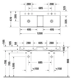 Duravit DuraSquare – Möbel-Doppelwaschtisch 1200×470 Mm, DuraCeram, Alpinweiß 2353120079