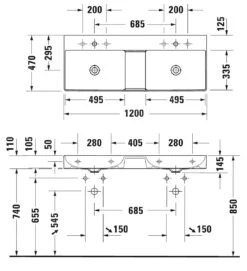 Duravit DuraSquare – Doppelwaschbecken 1200×470 Mm, DuraCeram, Alpinweiß 2353120070