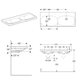 Geberit ICon – Doppelwaschtisch 1200×480 Mm, Mit Überlauf, 2 Hahnlöcher, Weiß 501.838.00.1