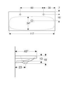 Geberit ICon – Doppelwaschtisch 1200x480x160 Mm, Mit Überlauf, 2 Hahnlöcher, Weiß 501.837.00.1