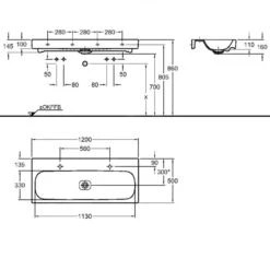 Geberit Acanto – Waschtisch, 1200×482 Mm, Mit Überlauf, 2 Hahnlöcher, Weiß 501.880.00.1