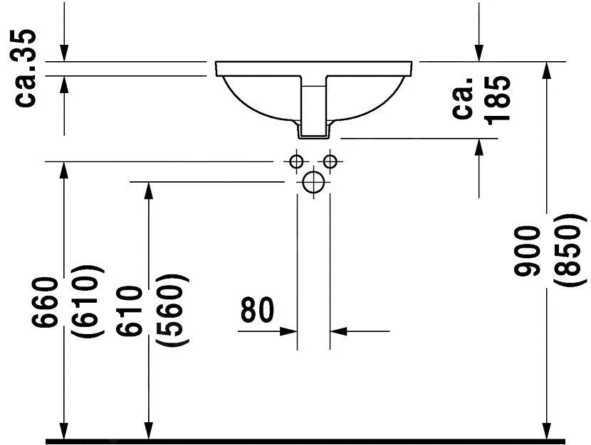 - bei den Einbauwaschtischen für den Einbau von unten beziehen sich die Angaben über die Abmessungen auf die Innenabmessungen