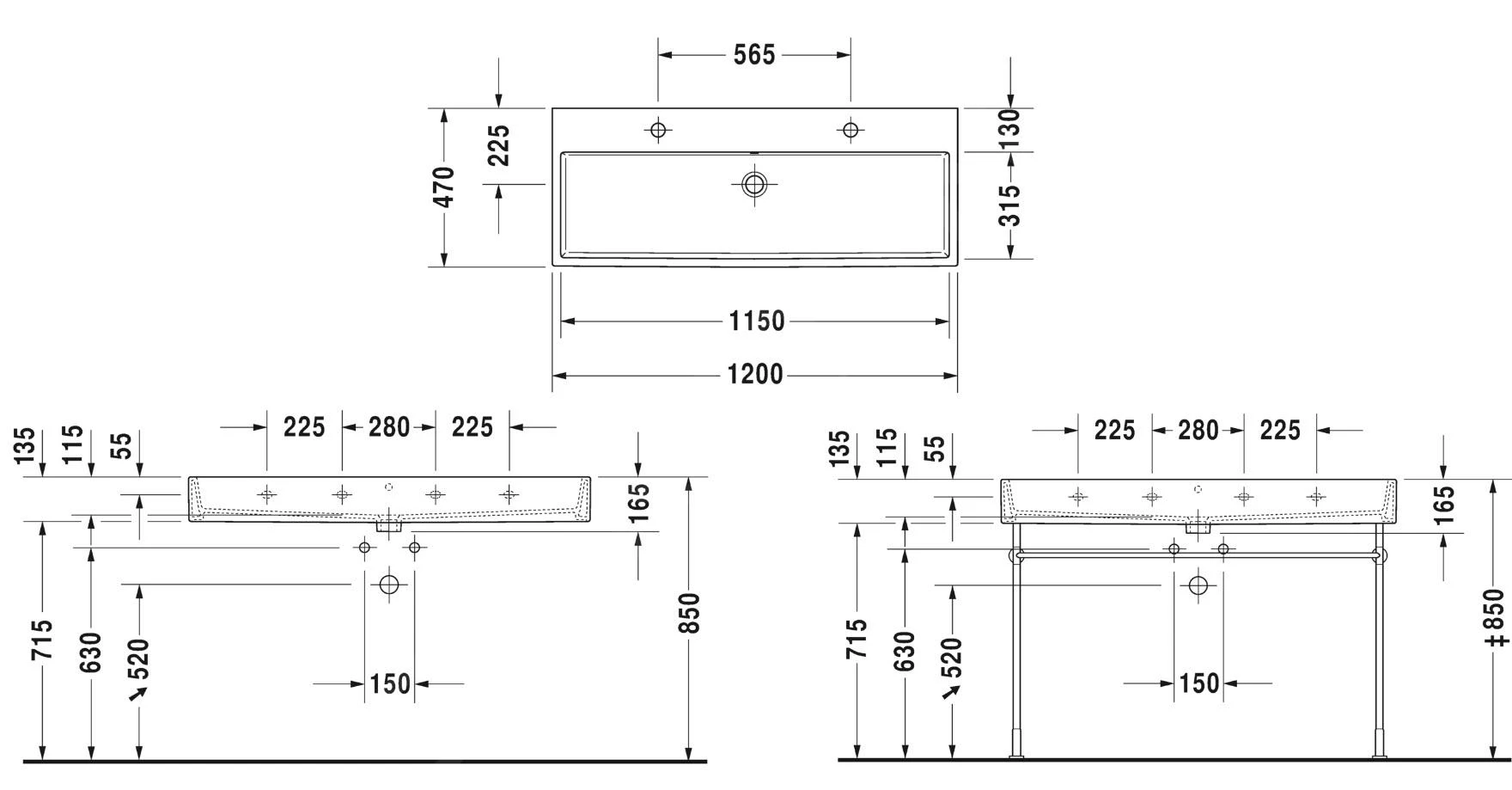 - Abmessungen: 1200 x 470 x 165 mm