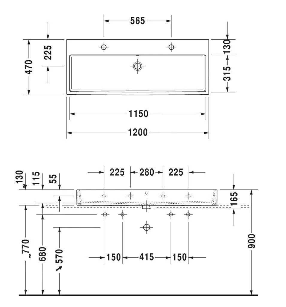 - Abmessungen: 1200 x 470 x 165 mm