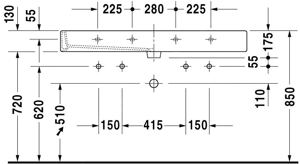 Für Waschtische mit einer Länge von 1000 mm und mehr müssen 2 Befestigungssets verwendet werden (nicht in der Lieferung enthalten).