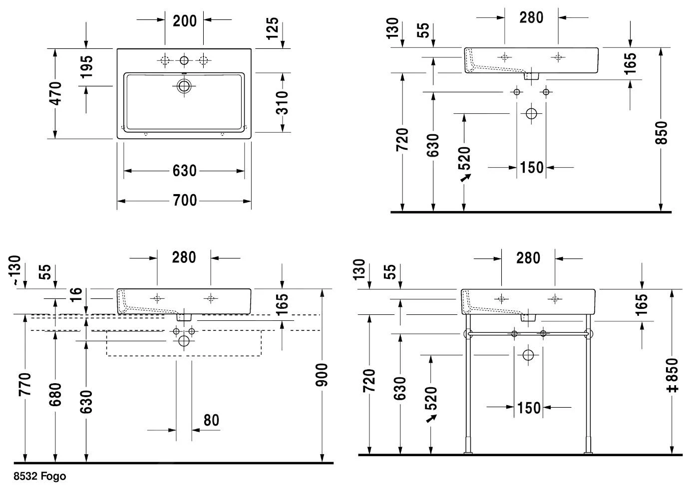 Waschtisch für den Einbau in Möbel mit Überlauf