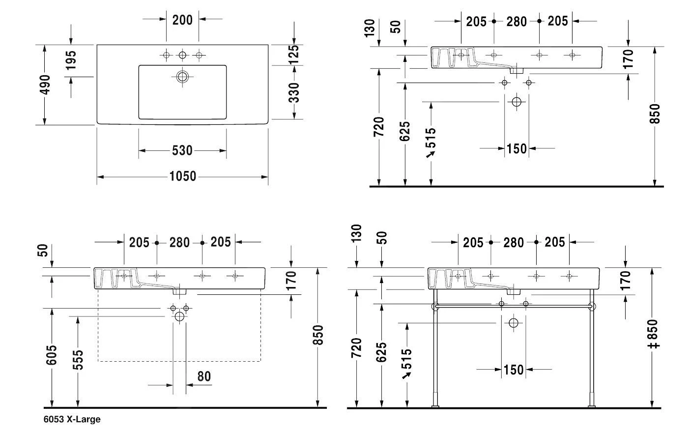 Für Waschtische mit einer Länge von 1000 mm und größer müssen 2 Befestigungssets verwendet werden.