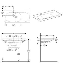 Geberit Acanto – Waschtisch, 1200×482 Mm, Mit Überlauf, 2 Hahnlöcher, KeraTec, Weiß 501.880.00.2
