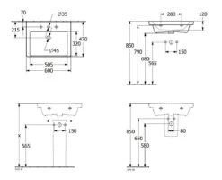 Villeroy & Boch Subway 3.0 – Waschbecken 600×470 Mm, Mit Überlauf, Mit Hahnloch, Alpinweiß 4A706001