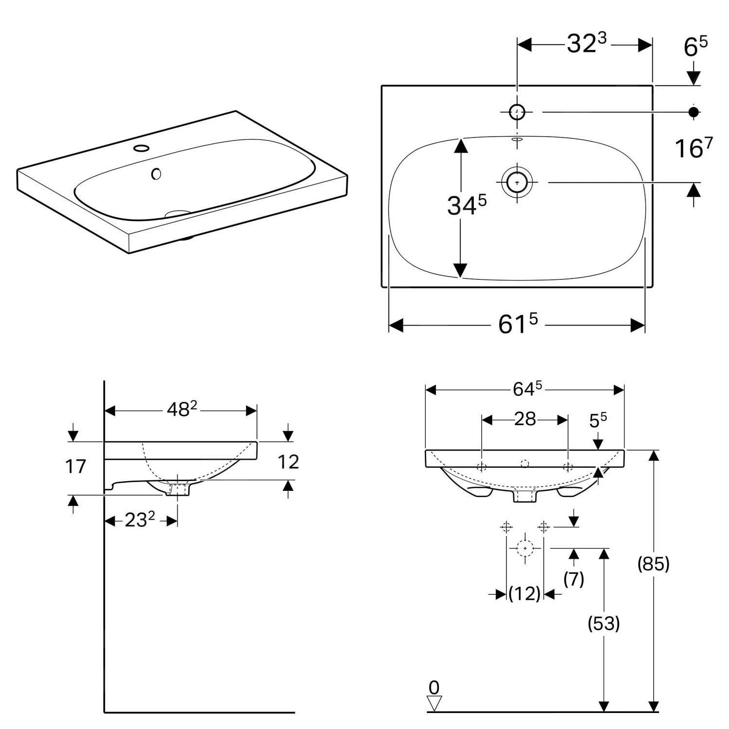 Waschtisch mit Überlauf und einem Hahnloch