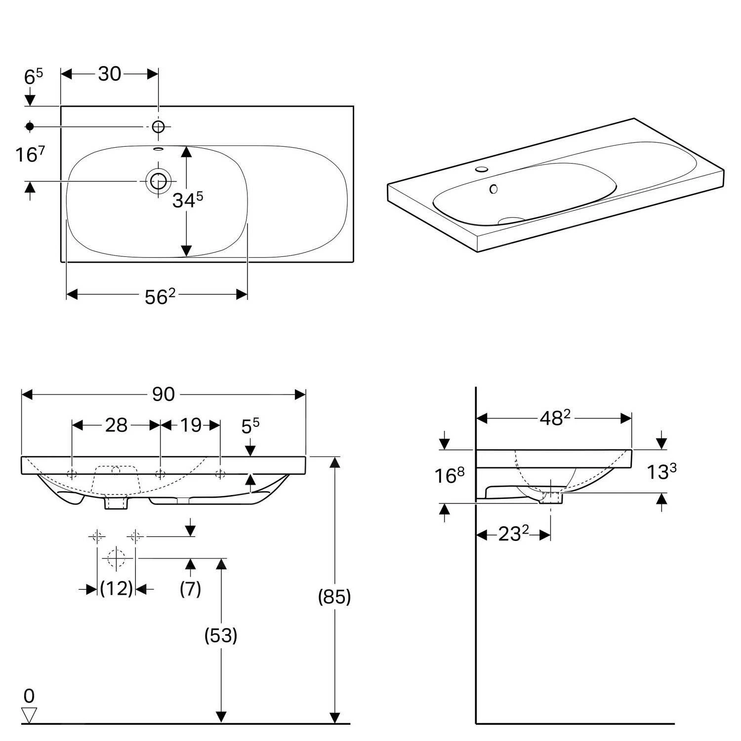 Waschtisch mit Überlauf und Ablagefläche rechts