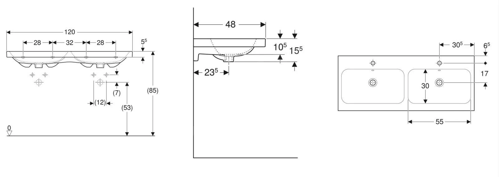 Armatur und Ablaufgarnitur nicht im Lieferumfang enthalten.