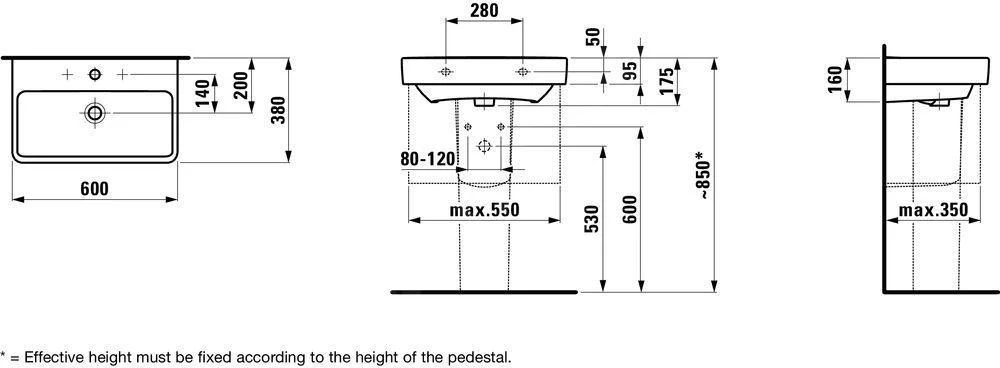 Waschbecken mit 1 Hahnloch, mit Überlauf