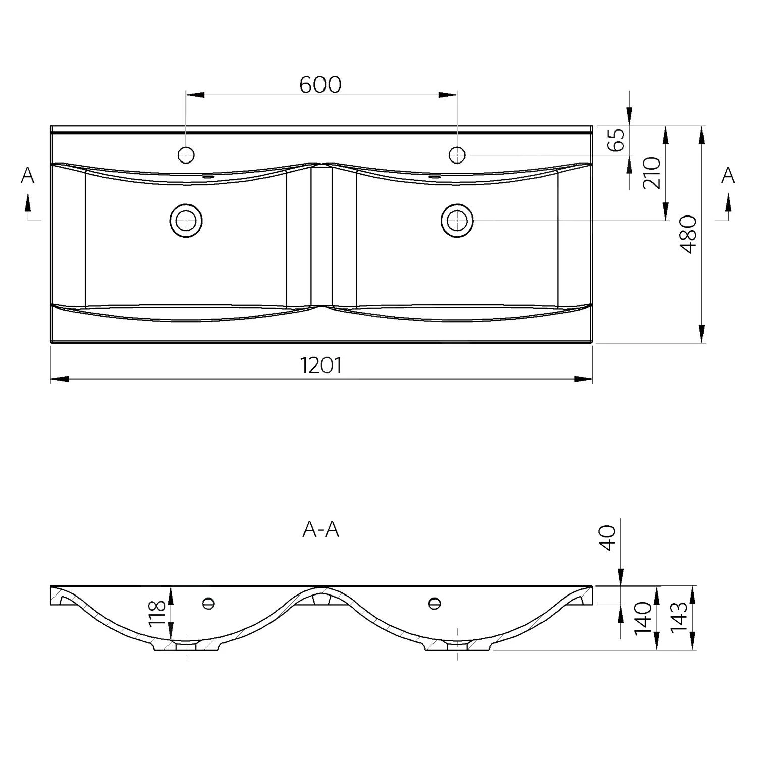 - Abmessungen 1200 x 500 mm