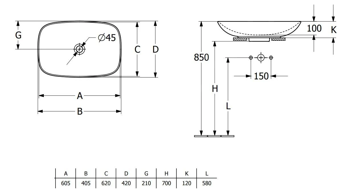 Waschbecken zum Aufstellen auf einer Arbeitsplatte oder einem Badezimmerschrank