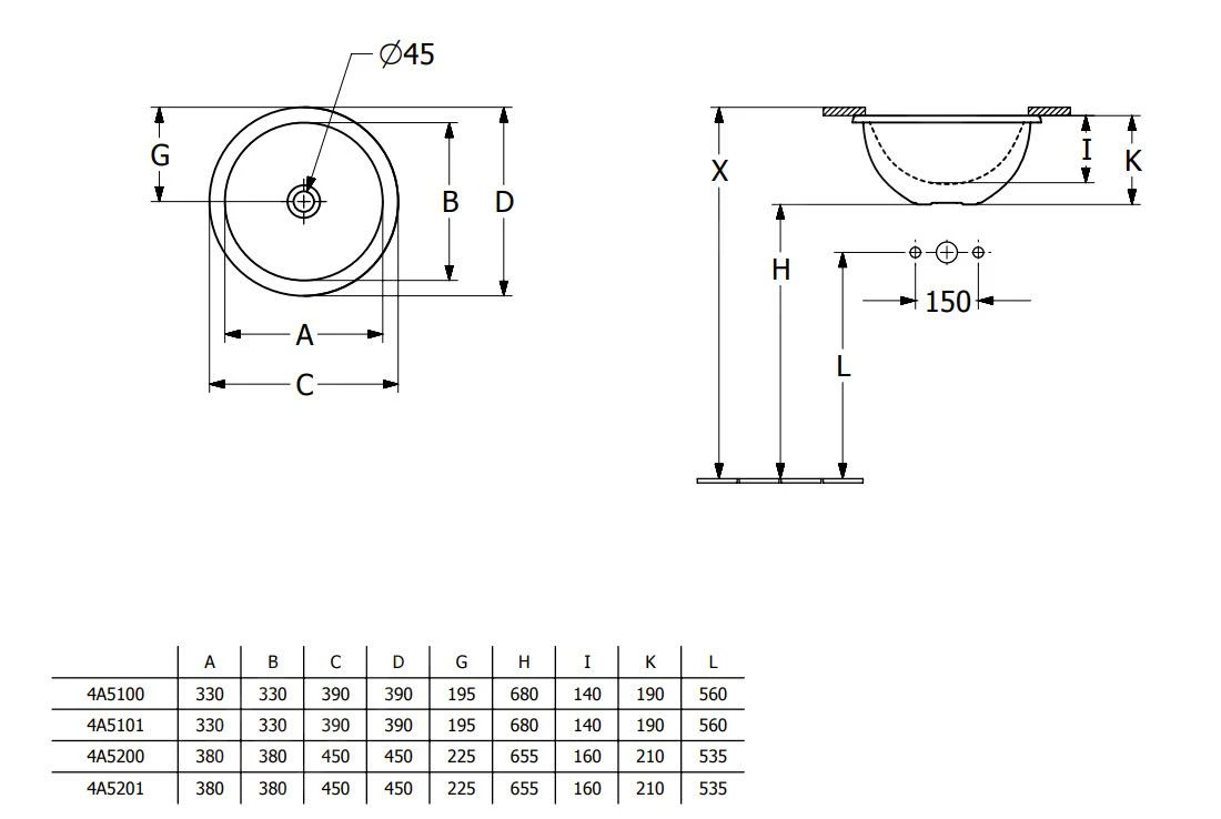 - Ausschnitt muss entsprechend des Originalwaschbeckens ausgeführt werden