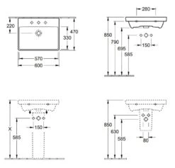 - der Ausschnitt muss gemäß dem Originalwaschtisch durchgeführt werden