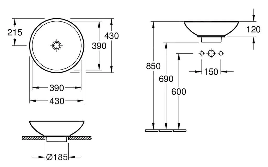 für Wandarmaturen oder Armaturen mit hohem Körper