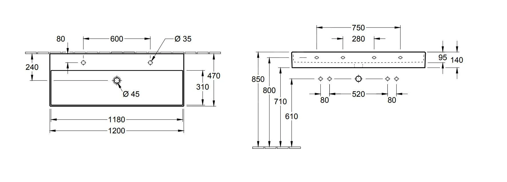 - Abmessungen: 1200 x 470 mm