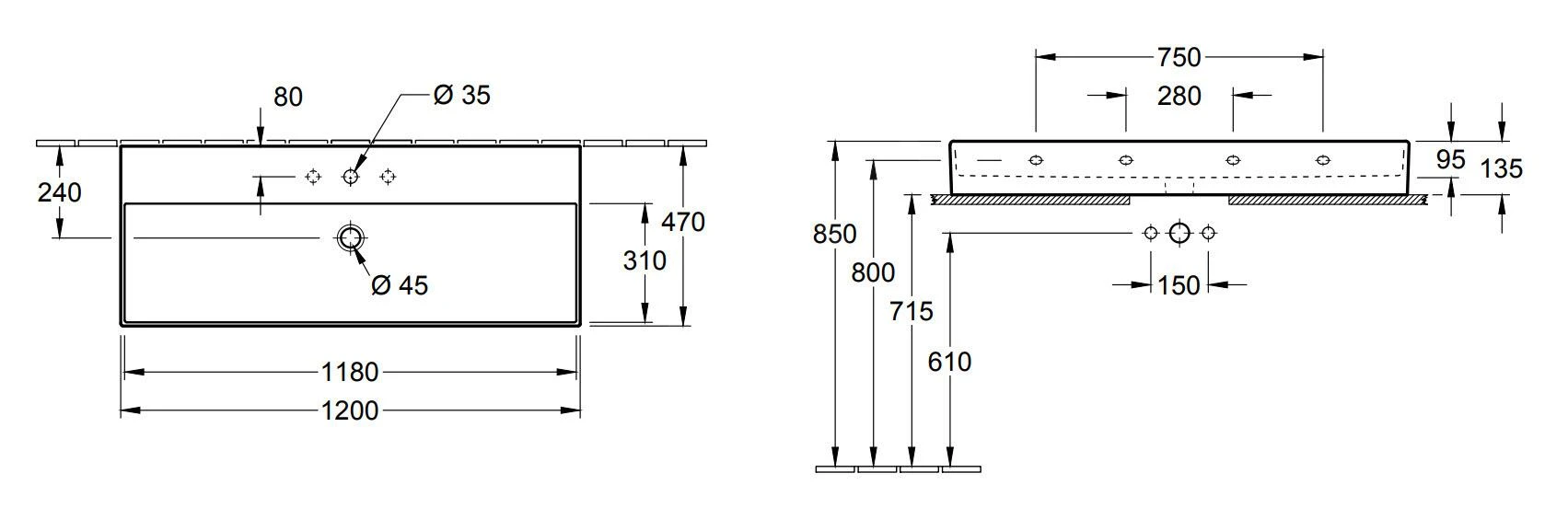 - Abmessungen: 1200 x 470 mm