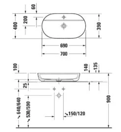 Duravit 2nd Floor – Aufsatzwaschbecken 580×415, Ohne Überlauf, WonderGliss, Weiß 03175800001