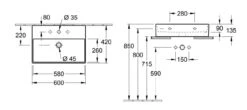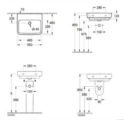 Villeroy & Boch O.novo – Waschbecken 550×460 Mm, Ohne Überlauf, Ohne Hahnloch, Alpinweiß 4A415801