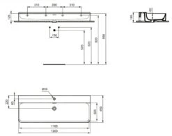 Ideal Standard Conca Ceram – Waschtisch 1200×450 Mm, Mit Überlauf, 3 Hahnlöcher, Weiß T380401