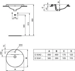 Ideal Standard Connect – Einbauwaschbecken, 480 Mm, Mit Überlauf, Hahnloch, Weiß E504201