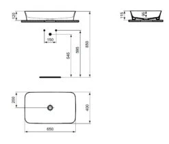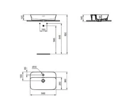 Ideal Standard Ipalyss – Aufsatzwaschbecken 550×380 Mm, Ohne Überlauf, IdealPlus, Weiß E2076MA